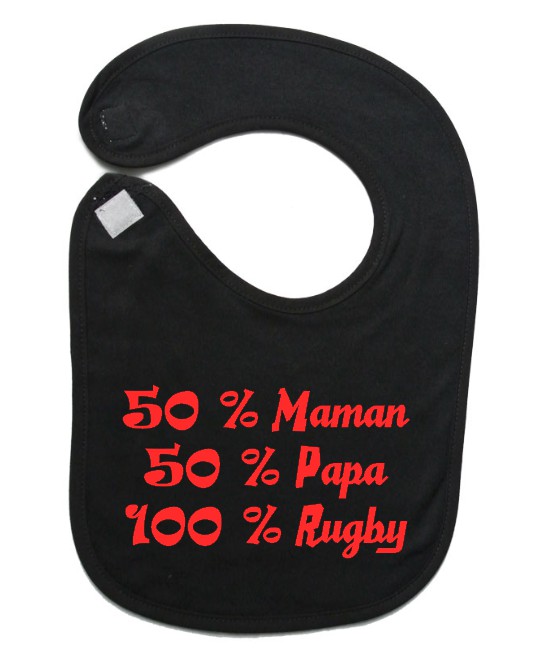 Bavoir bébé "100 % rugby " Noir/Rouge